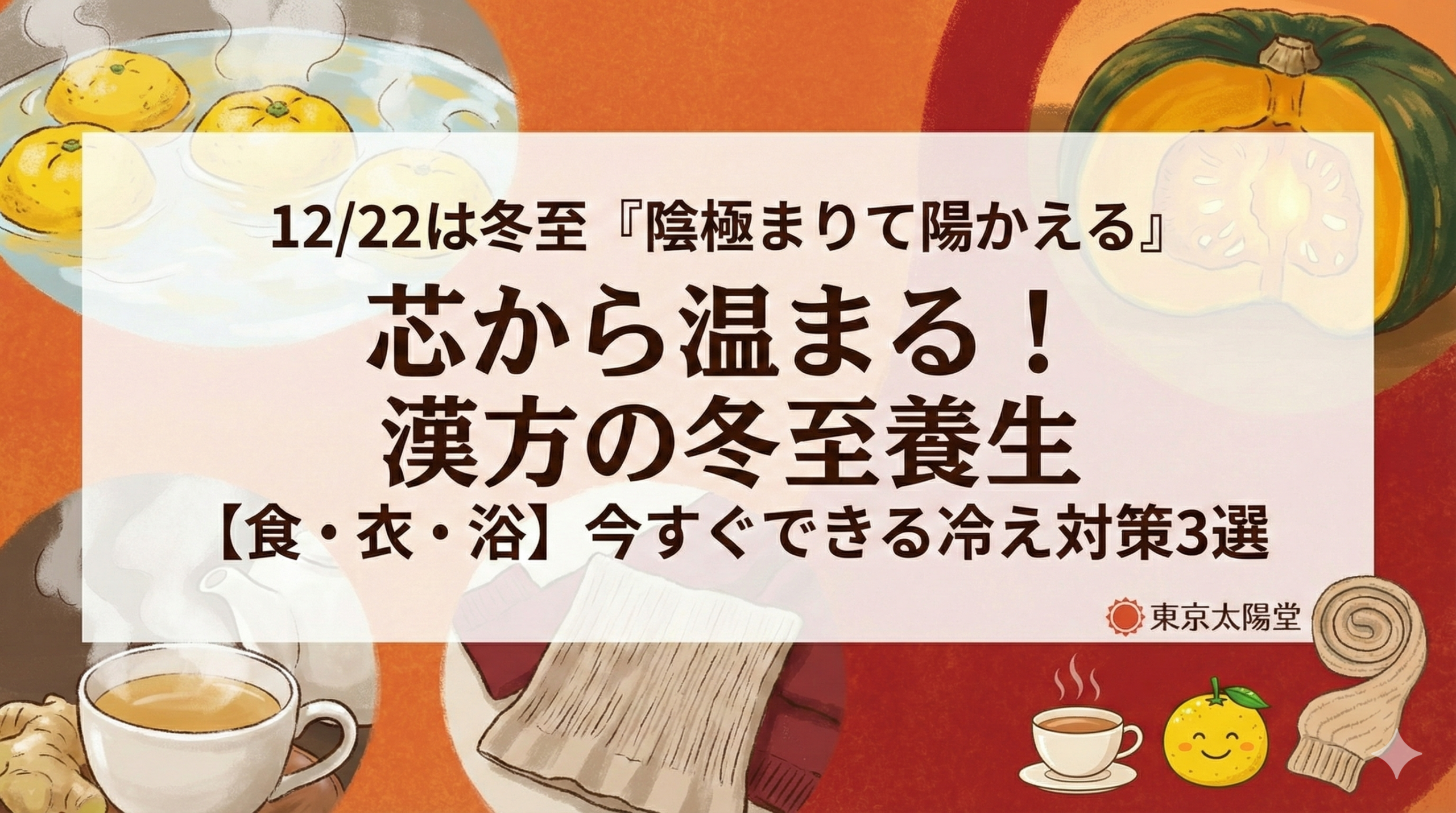 本格的な寒さが来る前に、ご自身の体質に合った漢方で、内側から「陽気」を補うケアを始めてみませんか? 東京太陽堂では、あなたの冬の養生を全力でサポートいたします。