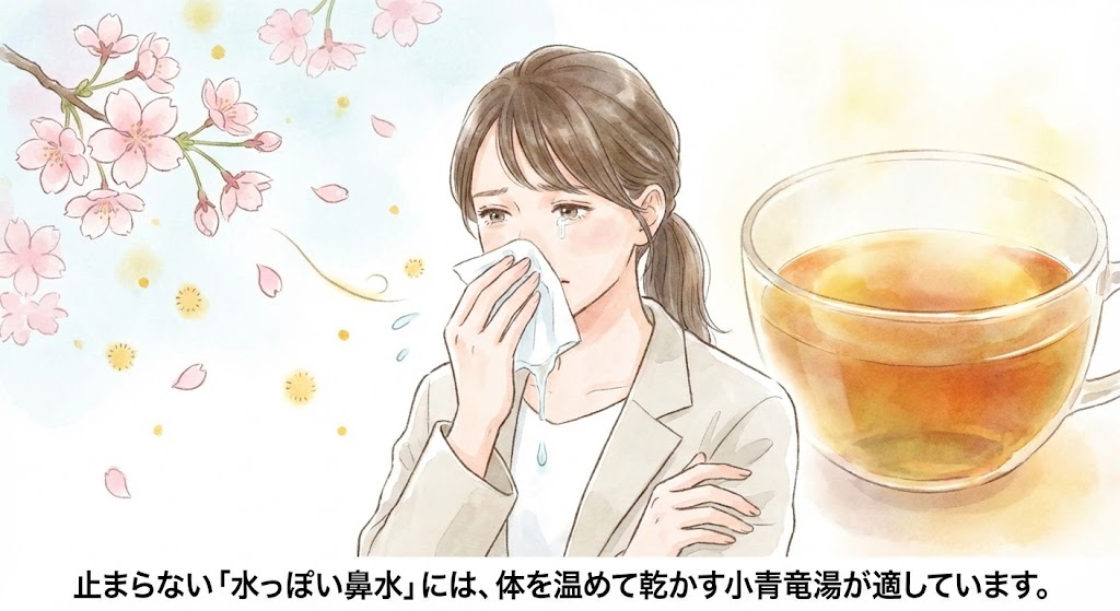 漢方では、サラサラとした透明な鼻水が出る状態を「溢飲(いついん)」と呼びます。