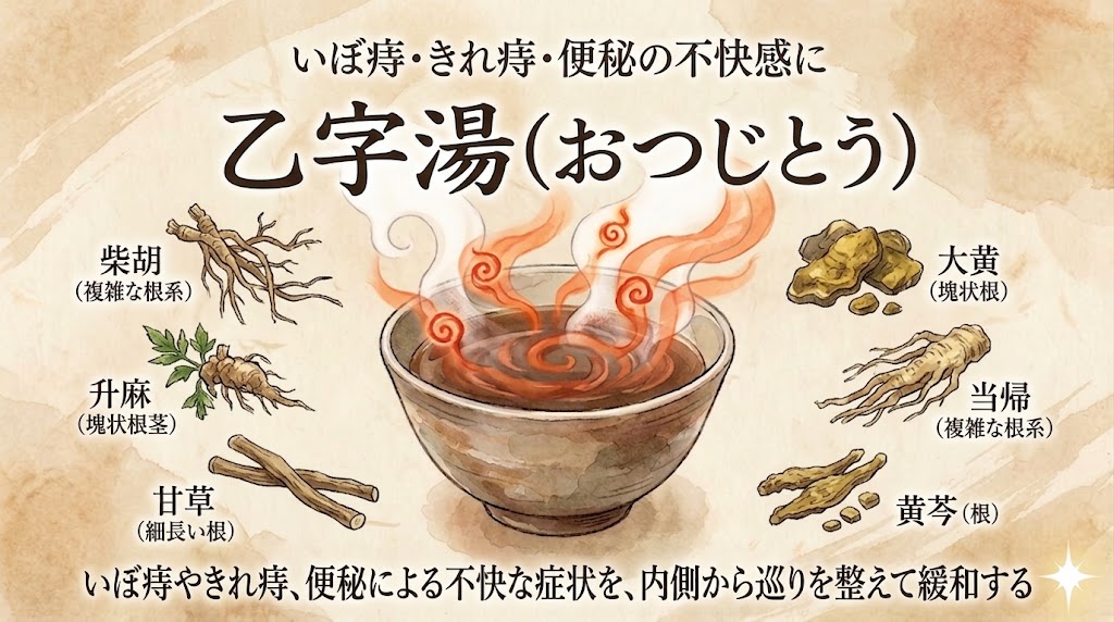 痔の痛みや腫れに悩んで漢方薬を調べたことのある方なら、一度は「乙字湯(おつじとう)」という名前を目にしたことがあるかもしれません。