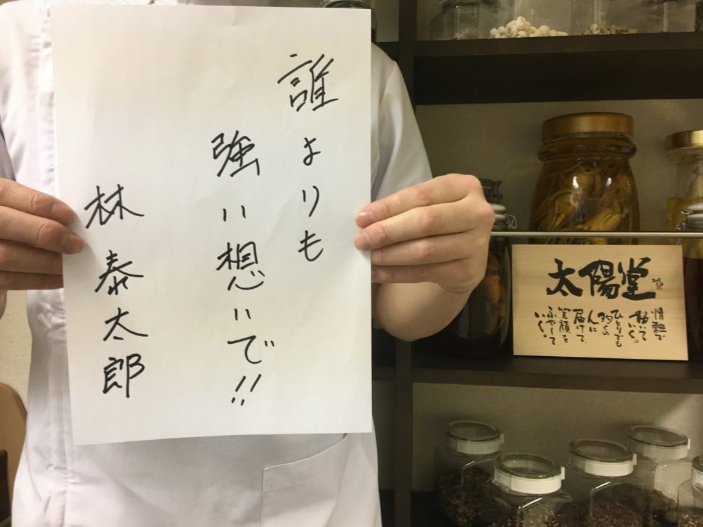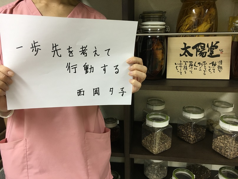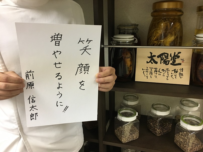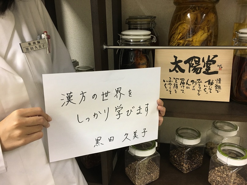入社してから1ヶ月、焦る事はあるが焦らずに「漢方薬の事」・「養生法の事」をしっかり学んでいきたいとの事でした。