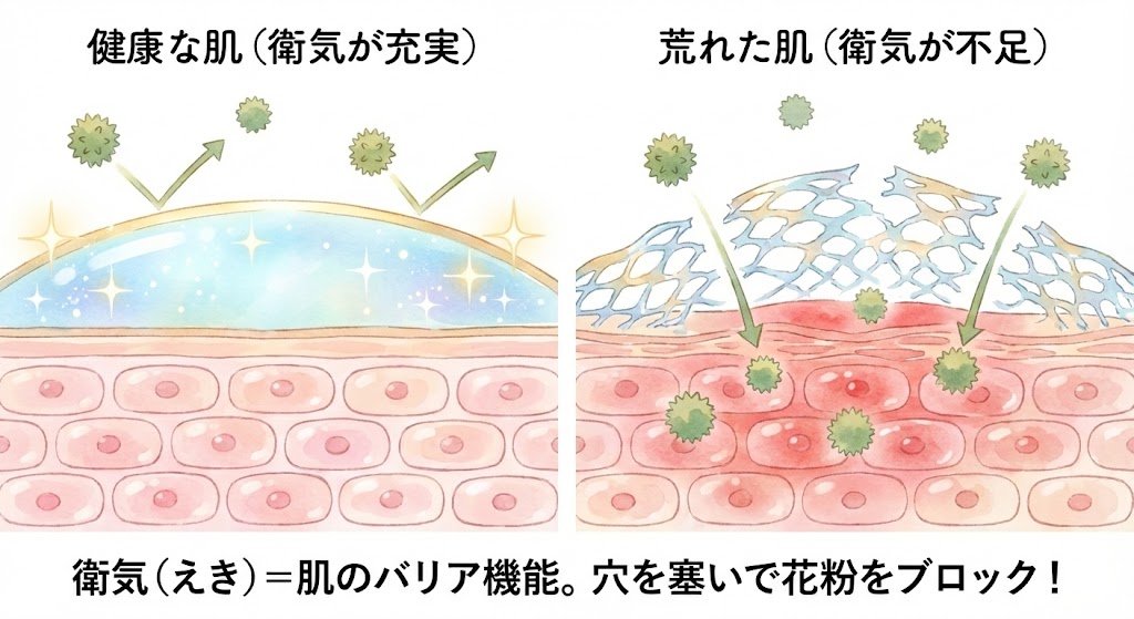 漢方では、この体の表面を守るバリアのことを「衛気(えき)」と呼びます。 以前の記事では「風邪から守る見えないマスク」として紹介しましたが、実は肌にとっても「天然の保護クリーム」のような役割を果たしているんです。